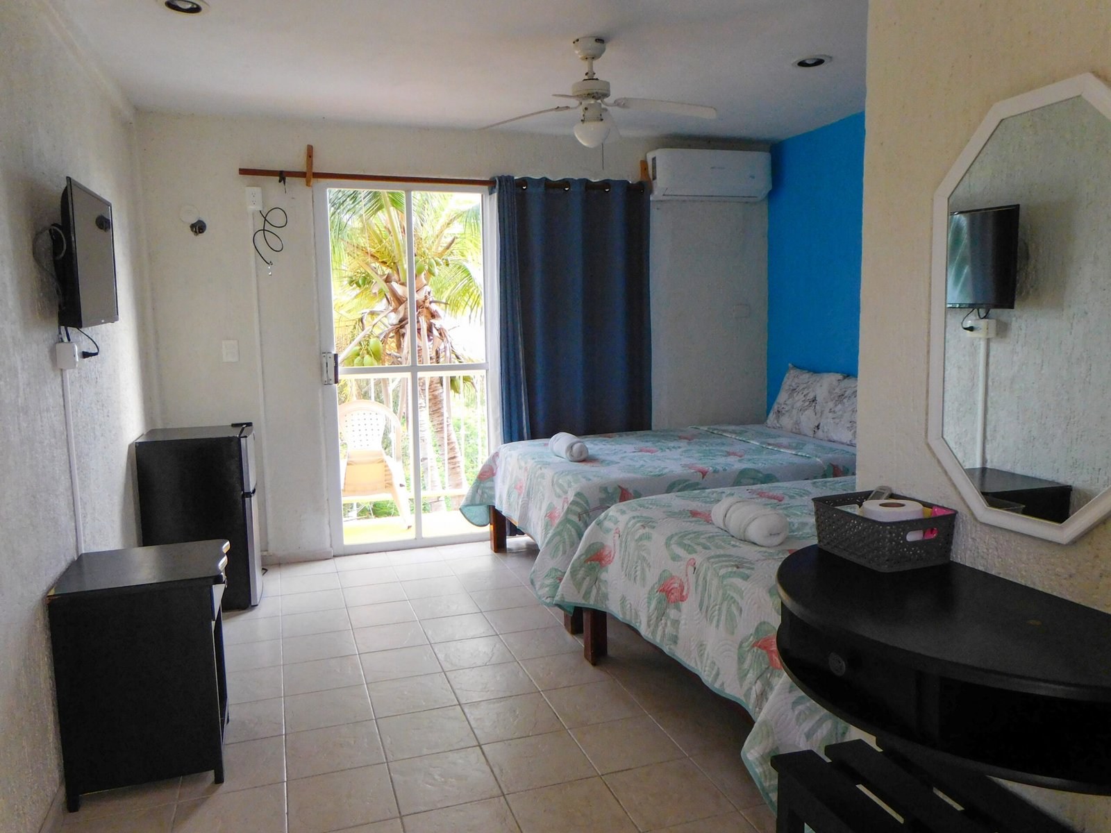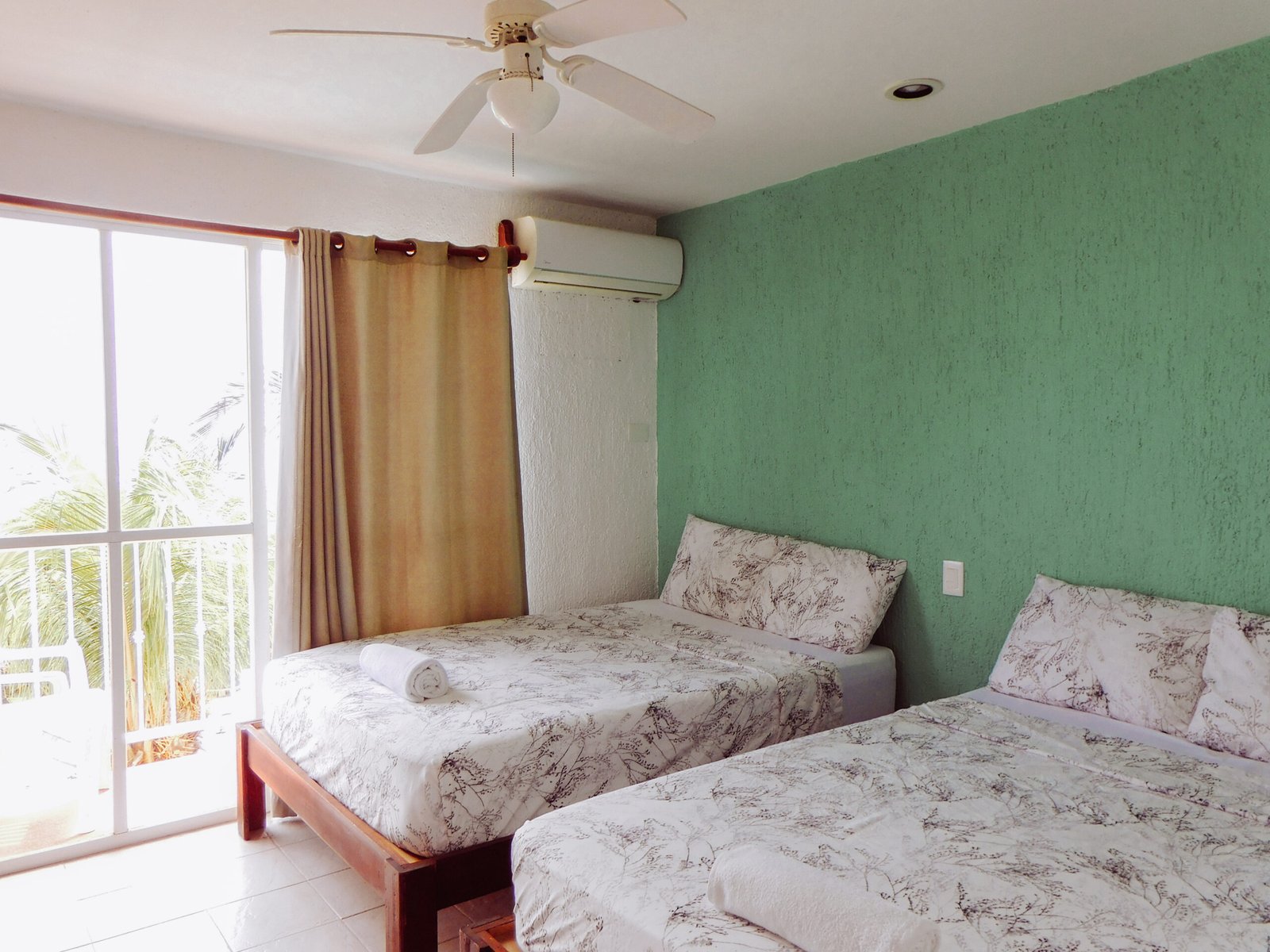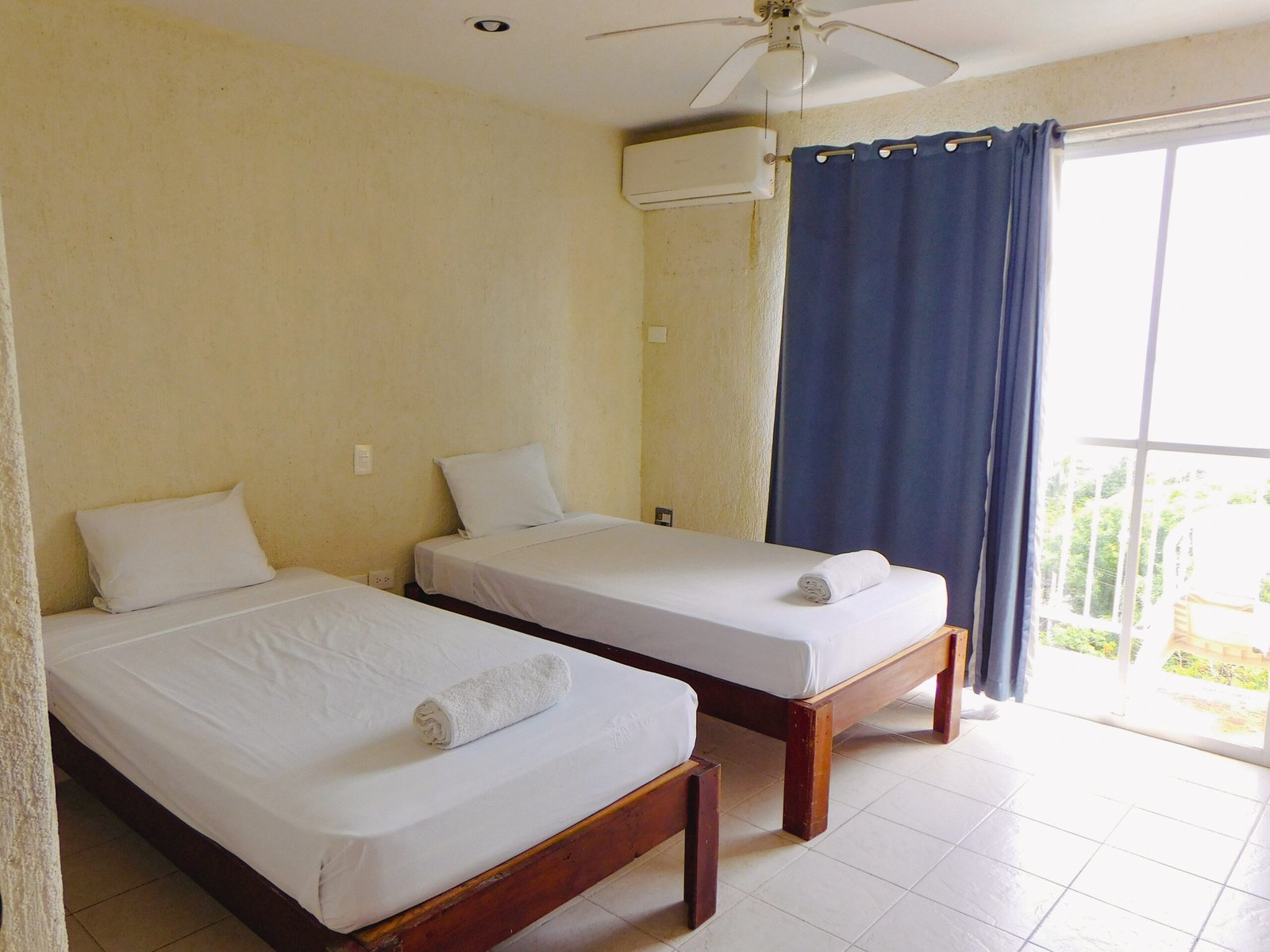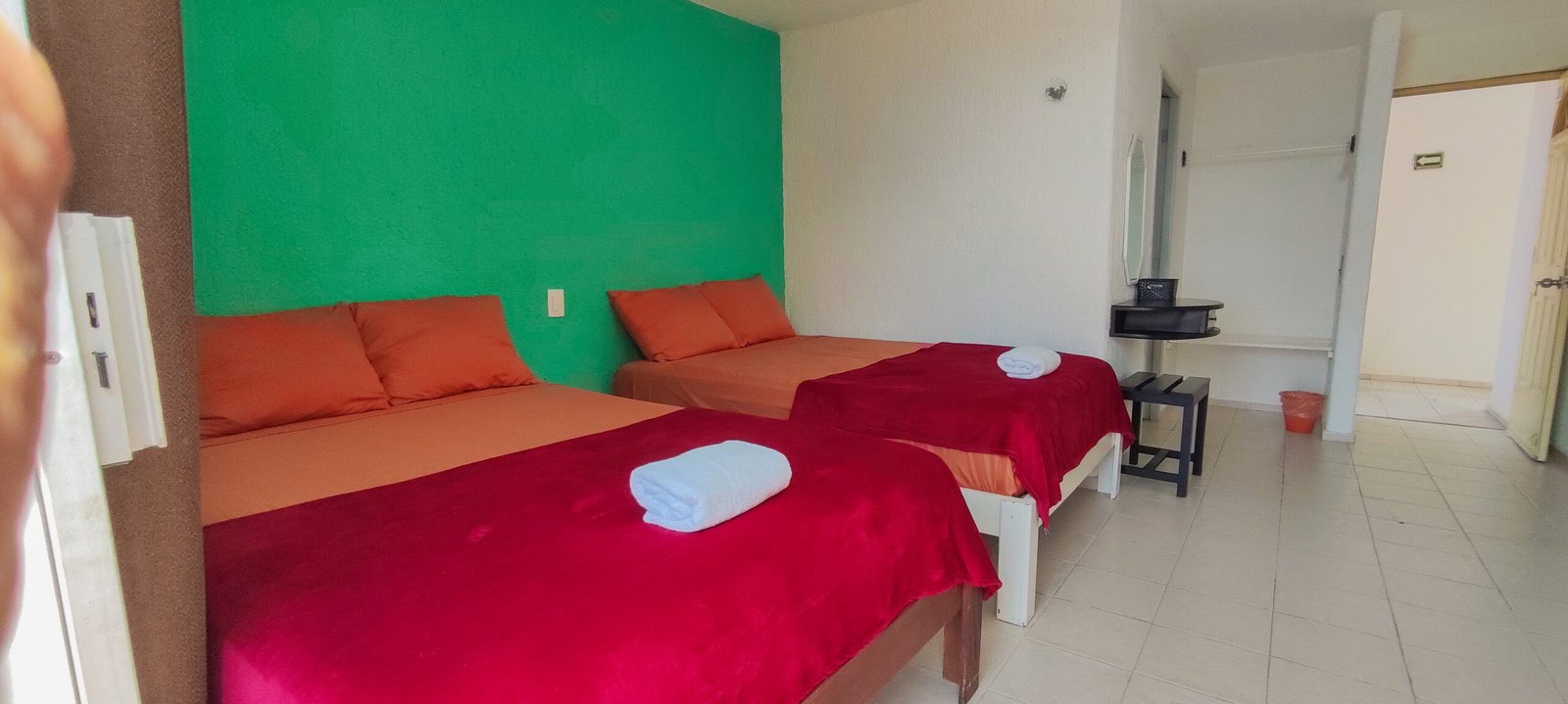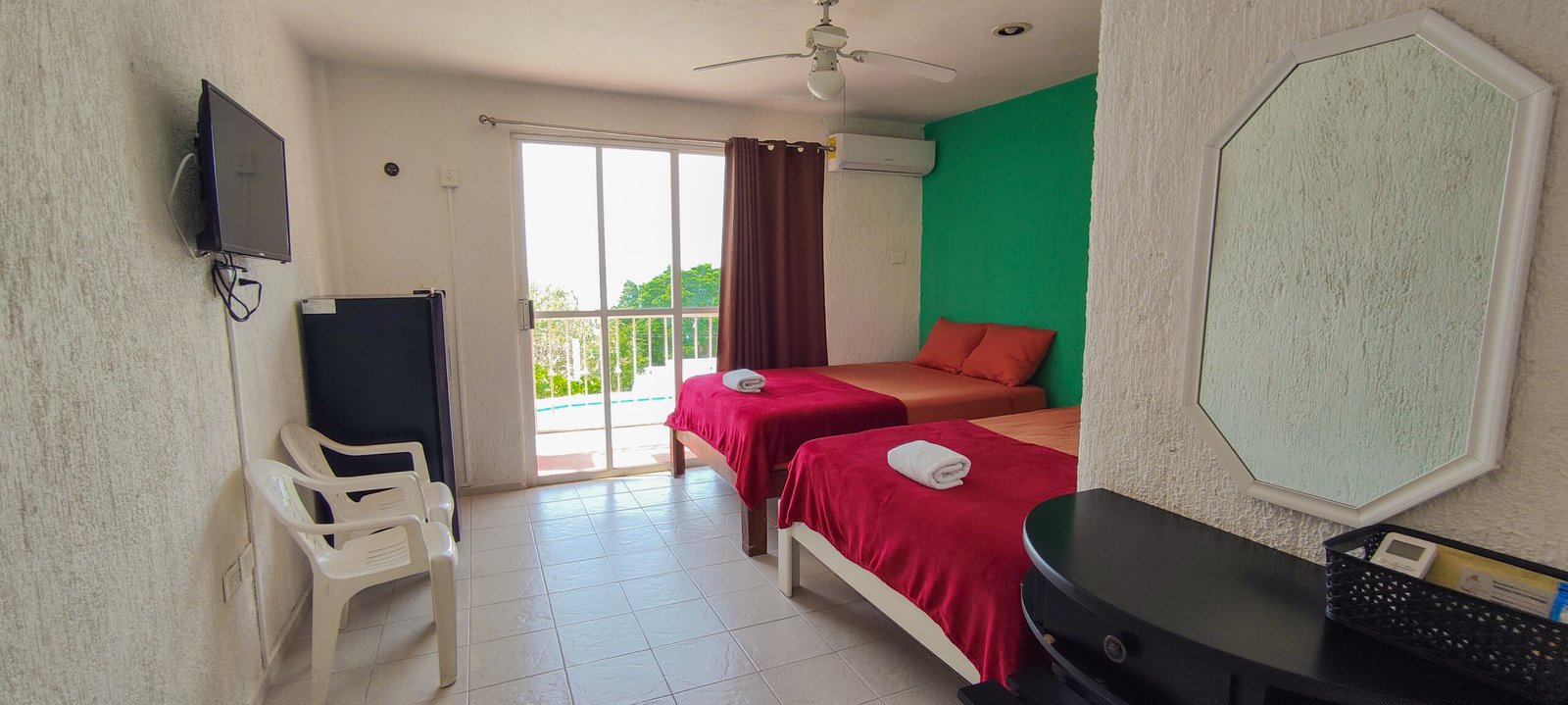 En nuestras habitaciones encontrarás todo lo esencial para una estancia cómoda y agradable: agua caliente, ventilador o aire acondicionado, pequeño frigobar, espacio para guardar tu ropa y conexión a internet.
